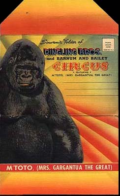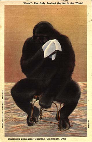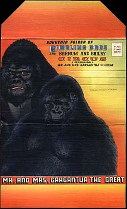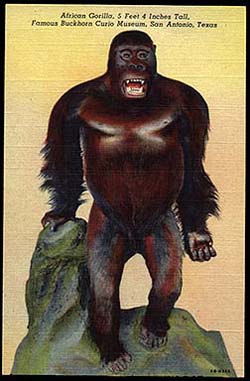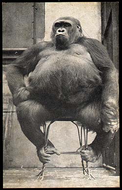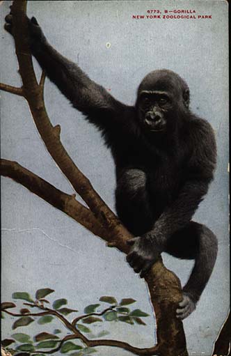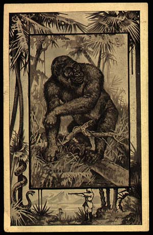 On the left is an early 1909 gorilla glimpse from an educational postcard.